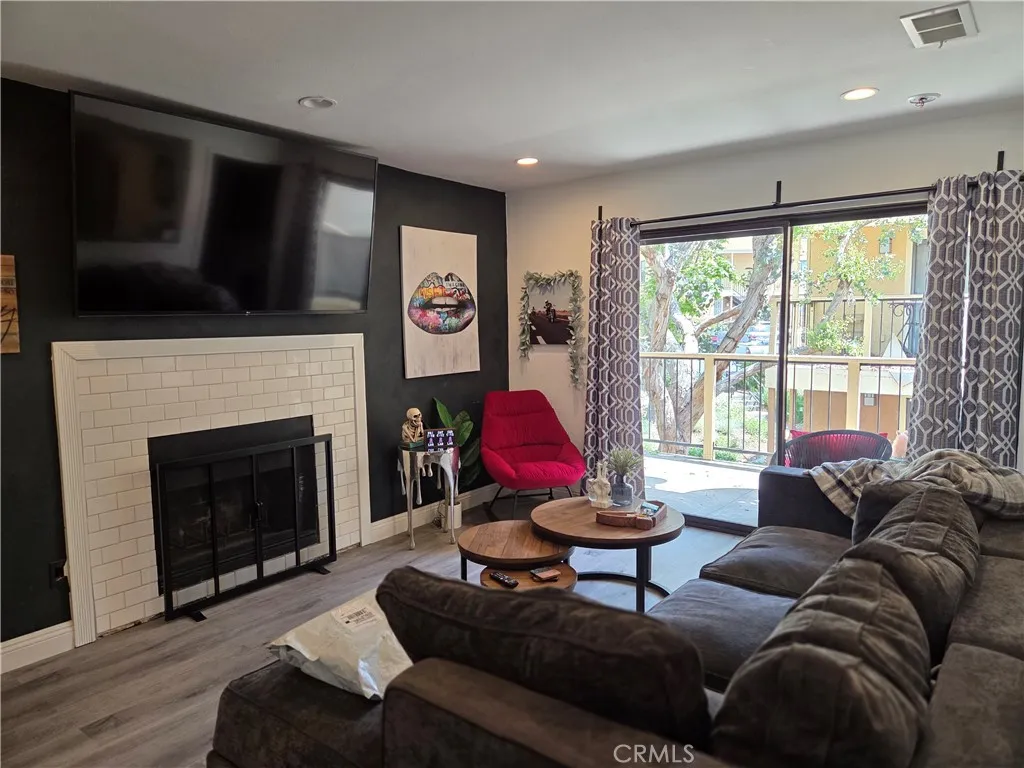 Cozy 1 bedroom 1 bath condo in a gated community. This condo is ready to move in. Large bedroom with 2 oversize mirrored closets and ceiling fan. Bathroom with tile flooring and tub shower condo and epoxy countertop. Separate dining area. Stackable washer dryer. Kitchen offers recessed lighting, stainless steel Refrigerator, stove, microwave, and sink and epoxy countertops. Living room with cozy fireplace for your winter nights. Sliding door off of living area to balcony with a beautiful mountain view to enjoy your morning coffee. This condo is a corner unit located close to the mail room. Great location. Extras include newer vinyl plank flooring, blinds in dining and bedroom, recessed lighting, Adjustable TV mount in living room and 2 extra storage closets. Close to shopping, restaurants, and freeway access This is a must see. you wont be disappointed. Water and Sewer are included in the HOA.