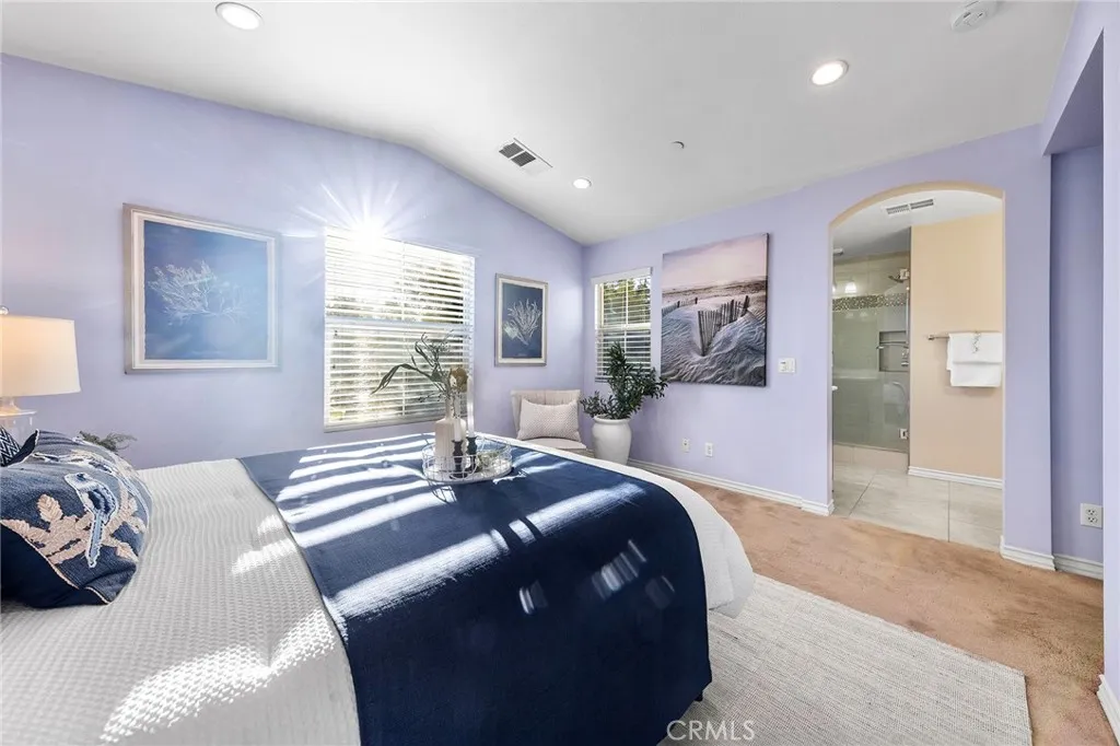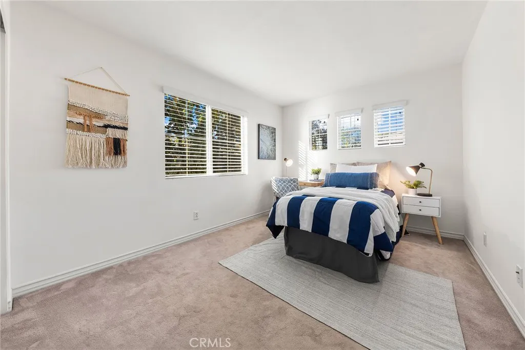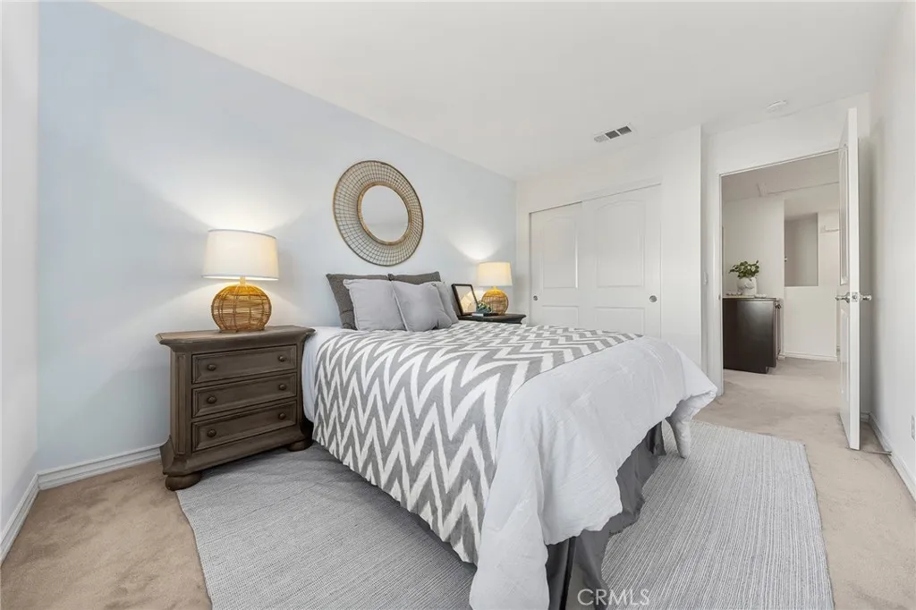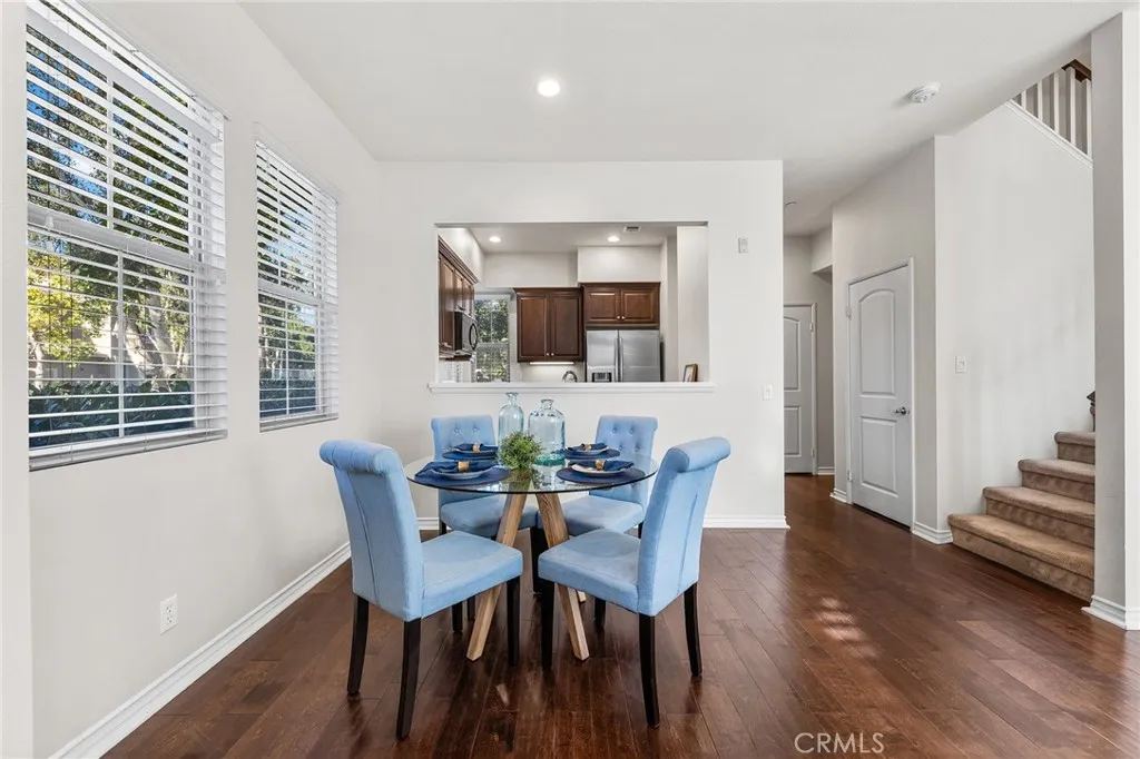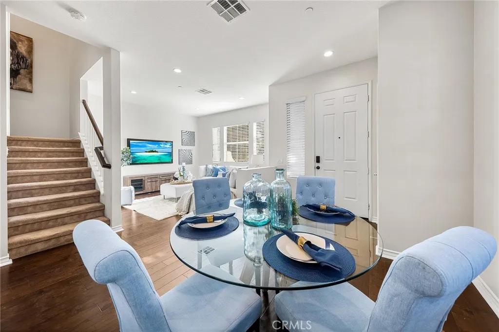 Welcome to this quiet and sun-filled south-facing corner-lot townhouse located in the highly desirable Woodbury East neighborhood. Set within a peaceful, interior location of the community and directly facing a neighborhood park with expansive green space, this home offers a serene setting along with its prime orientation and corner positioning, allowing for abundant natural light throughout the day. This residence offers an open floor plan with 3 bedrooms plus a loft, 2.5 bathrooms, and approximately 1,500 sq ft of living space. Interior upgrades include distressed-style flooring on the main level, plush carpeting upstairs, recessed lighting, custom interior paint, a smart home thermostat, and an electric vehicle charger. The gourmet kitchen is thoughtfully designed with granite countertops, rich mahogany cabinetry, and stainless steel appliances. The upper level is well organized, featuring a primary suite, two secondary bedrooms, and a versatile loft. The primary bedroom is enhanced by vaulted ceilings, creating a sense of openness while remaining exceptionally bright and spacious. The remodeled primary bathroom offers dual sinks, a well-appointed walk-in shower with elegant tile and mosaic detailing, and a generously sized walk-in closet, providing both comfort and functionality. The two secondary bedrooms are each well proportioned, offering comfortable layouts suitable for a variety of living needs. A versatile loft provides flexible functionality, ideal for a home office, reading lounge, or children's play area. A separate laundry room includes a washer and dryer. Outdoor enjoyment continues with a large front patio finished with artificial grass, perfect for relaxing or entertaining. Additional highlights include an attached two-car garage. Located within the award-winning Irvine Unified School District and just minutes from Woodbury Town Center. Residents enjoy the resort-style amenities of Woodbury East, including a 3.45-acre neighborhood park, a 2,470 sq. ft. recreation center, a junior Olympic-sized pool, wading pool, spa, fitness center, tennis and basketball courts, barbecue areas, and a vibrant tot lot - offering a true resort-inspired lifestyle. Convenient access to Irvine Spectrum, major freeways, John Wayne Airport, scenic biking and hiking trails, and the region's renowned coastal destinations completes the appeal of this exceptional location.